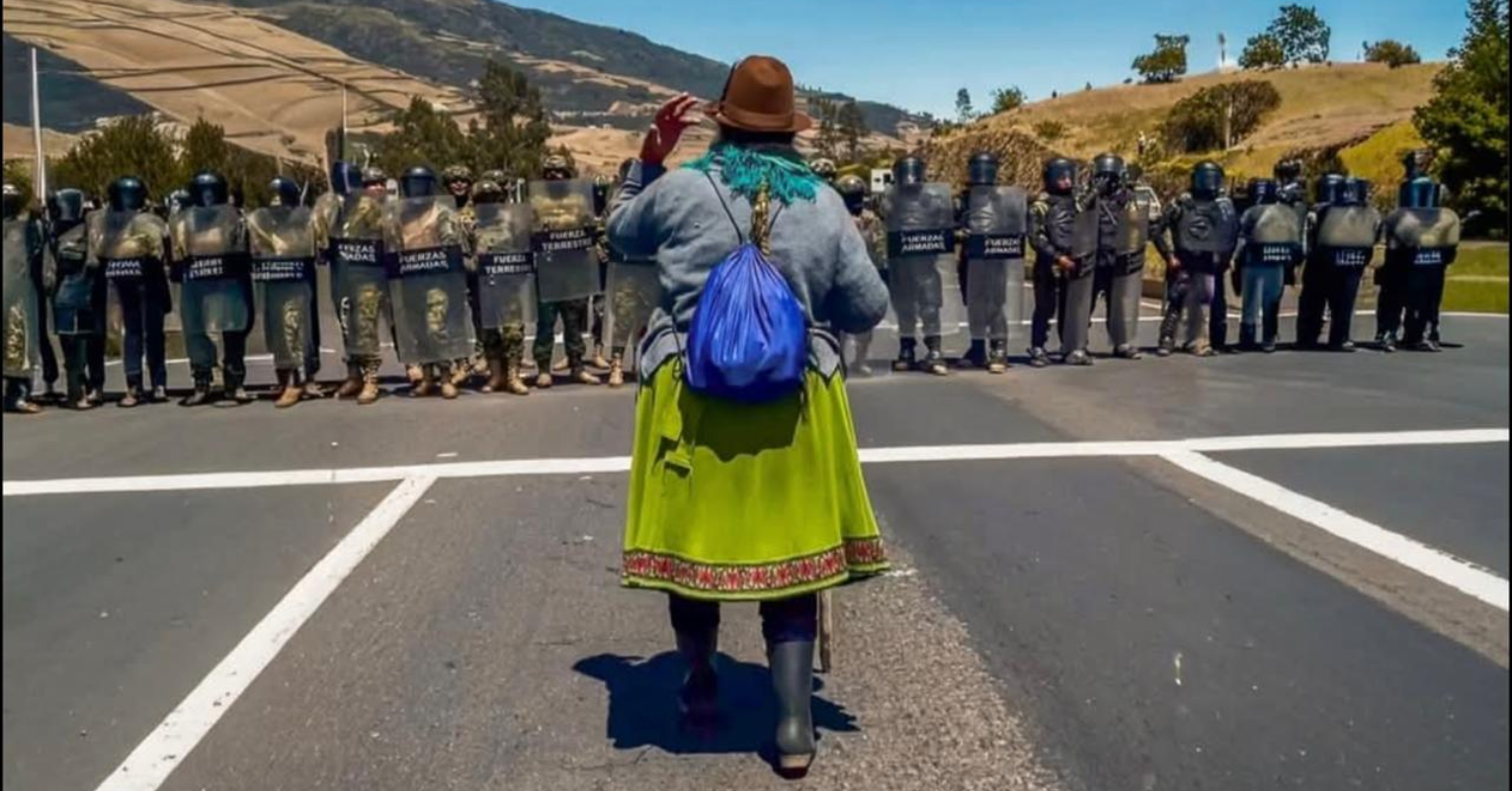 Mientras, la potencia de lxs que resisten sostienen wiphalas y miradas. De frente a muchachos armados, intentan que se les entre la memoria de luchas por lo único que tienen sin revestimiento, sus ojos. Es solo un deseo, a esta altura todxs conocemos la crisis del planeta y que a la tierra se la arraza sin dormir. Alguien les dice a los uniformados que ese no es un trabajo, y otra persona que los hacen pelear entre vecinxs.