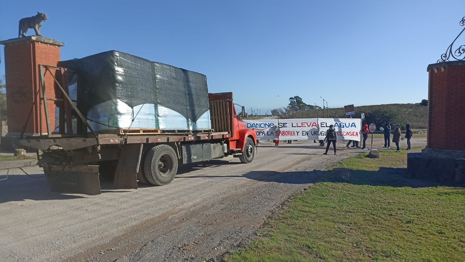 Ayer sábado 8 de julio, se realizó en Minas una movilización y corte de ingreso a la industria de Salus-Danone, principal embotelladora y mercantilizadora del agua en Uruguay. Compartimos texto e imágenes de la convocatoria.